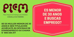 O CONCELLO DO PORRIÑO SELECCIONA MULLERES MENORES DE 30 ANOS DESEMPREGADAS PARA O PLAN INTEGRADO PARA MULLERES (PIEM)