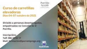CURSO DE CARRETILLAS ELEVADORAS DENTRO DO PROGRAMA PORRIÑO ACCEDE DENDE O 04 o 07 DE OUTUBRO.